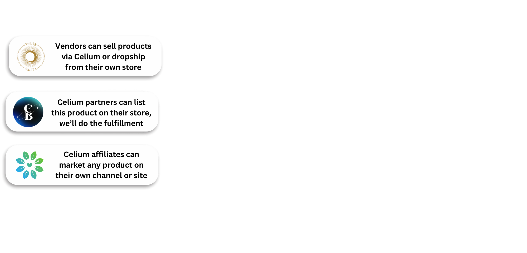 You only need to list each product once with us, after that, each Celium partner will be able to sell your product on their stores.
