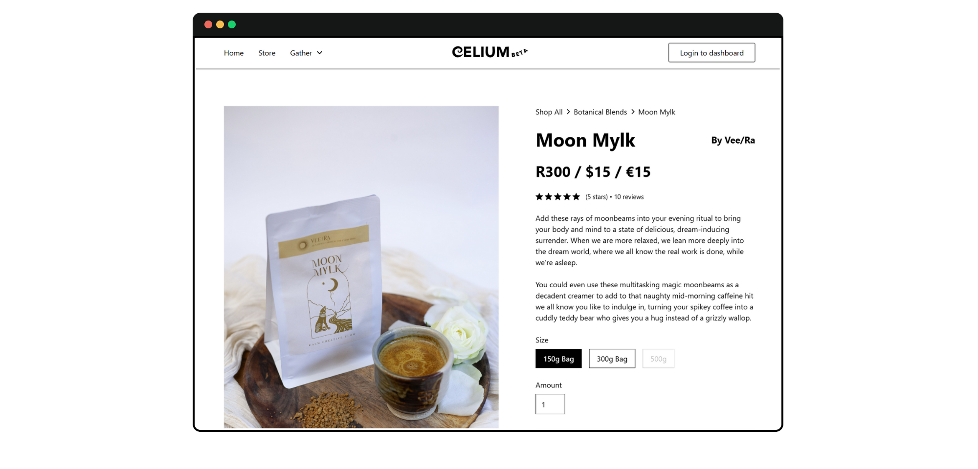don't have your own online store, we can simply hook you into our 'Celium Store' and